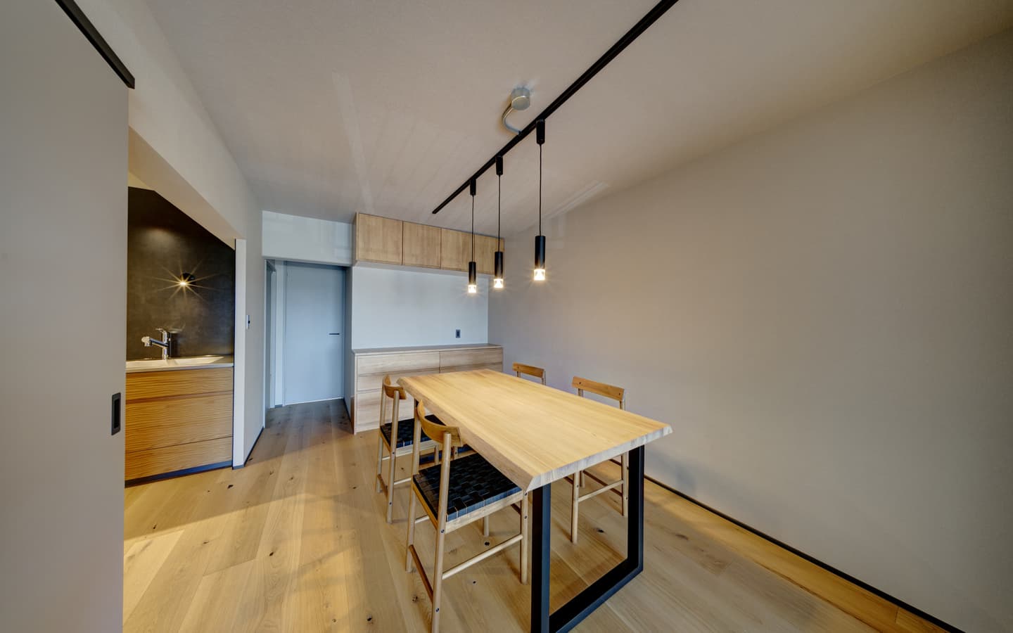 築43年の団地の味を生かしたモダンなデザインで仕上げました。神戸では珍しい置床工法で戸建てと同じ無垢フローリングで仕上げ、全体では木のぬくもりと安らぎを感じて頂ける空間をご提供します。また、細かい部分では神戸の町工場で作成した、鉄でできたスイッチプレートを採用、その他にも匠を感じさせる細かい拘りを体感ください。
